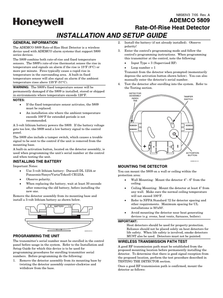 Honeywell Vista 21ip Install Guide Security Alarm Electrical Connector from imgv2-2-f.scribdassets.com Please note, the 5800c2w is not for use with fire or heat sensors and it is recommended that any existing smoke. View and download honeywell 5800combo installation and setup manual online. Ability to sense co by utilizing the realtest® feature as follows View online quick installation manual for honeywell 5800combo smoke alarm or simply click download button to examine the honeywell 5800combo guidelines offline on your desktop or laptop computer. Wireless honeywell transmitter used with home security system in the 1990s. For example, honeywell's wireless smoke, heat, and carbon monoxide detectors can be deployed throughout large buildings or facilities and configured to alert remote personnel of these are just a few examples of how honeywell's 5800 series sensors can be put to use for commercial applications. With the walk test switch set to on the led will light when the detector is tripped, and the alarm is generated instantly. The smoke detector can work as a standard device without the app, so if you don't want to use the.